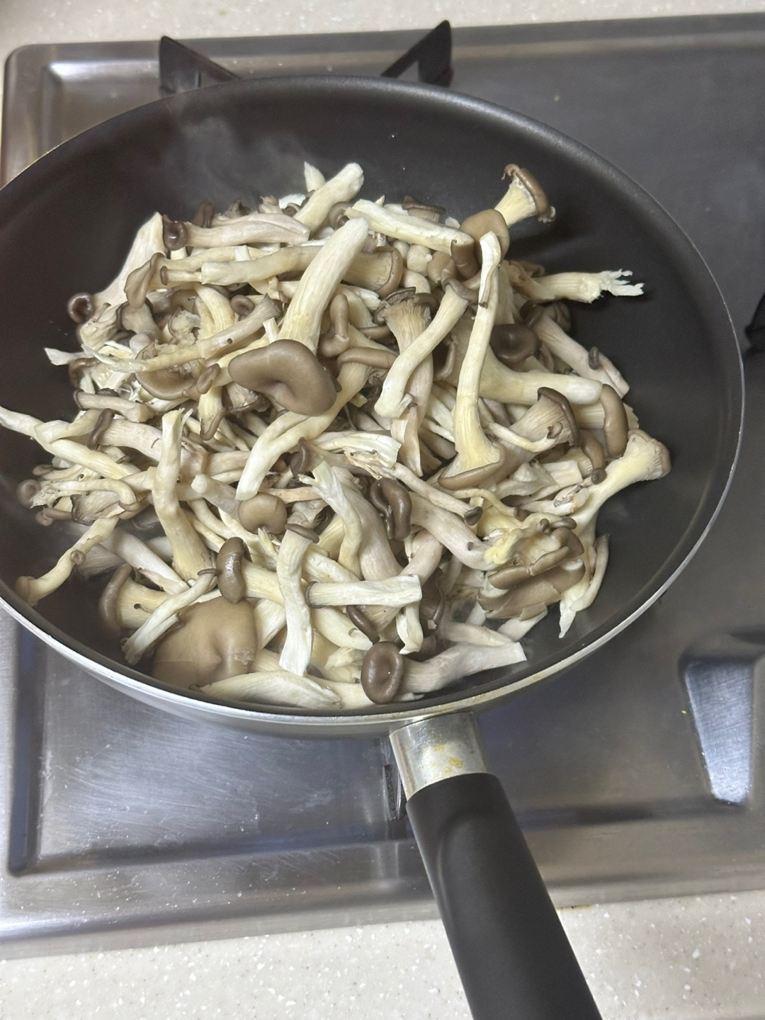 - 느타리버섯을 한개씩 갈라서 찢어서 볶아줍니다.